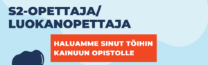 Opiskelijamäärän kasvaessa kaipaamme osaavaan ope-tiimiimme tolkkua vahvistusta! Oletko sinä etsimämme S2- tai luokanopettaja? Tule työskentelemään kansainvälisten nuorten ja nuorten aikuisten opettamiseen ja ohjaukseen ajalle 20.10.2025- 7.6.2026. Työtehtäviin kuuluu S2- sekä
