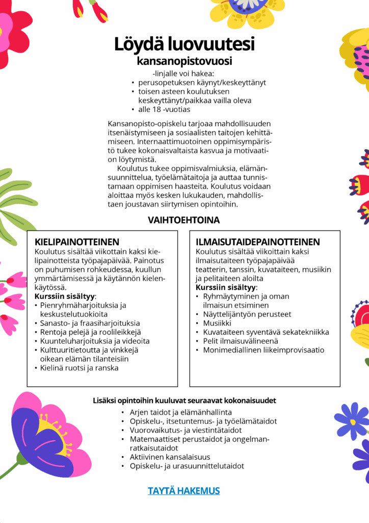 Kansanopistovuosi ”Löydä luovuutesi” -linjalle haku on avattu.